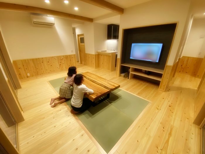 ▲▼リビングは腰壁&畳で落ち着ける和テイストな空間に